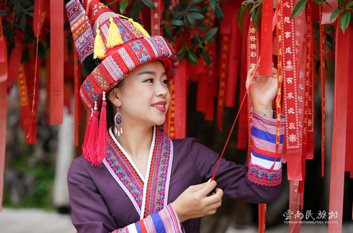 彝族在云南境內約471萬人,是省內人口最多、分布最廣的少數民族,主要聚居在金沙江、元江流域和哀牢山、無量山腹地。彝族是一個能歌善舞的民族,民間打歌、跳樂之風盛行,大三弦、跌腳舞久負盛名?;鸢压澥且妥遄罹咛厣拿褡骞澣?。彝族村占地50余畝,三虎浮雕墻與虎頭內祖師形象表現了彝族虎鷹文化。太陽歷廣場圖騰柱上有太陽、虎、火和八卦圖形象,周圍環繞著10個朝向不同的月球造型,外圓周有12生肖石雕。依山而建的“...